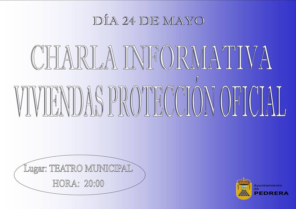 Próxima charla sobre viviendas VPO en Pedrera. Martes 24 mayo 20 horas - teatro municipal. Organiza Ayuntamiento de Pedrera.