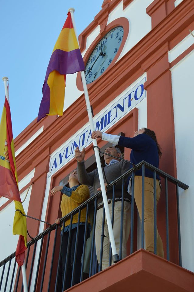 A las 11.30 h el Alcalde de Pedrera Antonio Nogales, acompañado de las concejalas Mari Carmen Gragea, Medio Ambiente y Lucía Ruiz, Participación Ciudadana, han colgado en el balcón de la fachada principal del Ayuntamiento, la bandera republicana, en conmemoración del 85º aniversario de la proclamación de la IIREpública.
