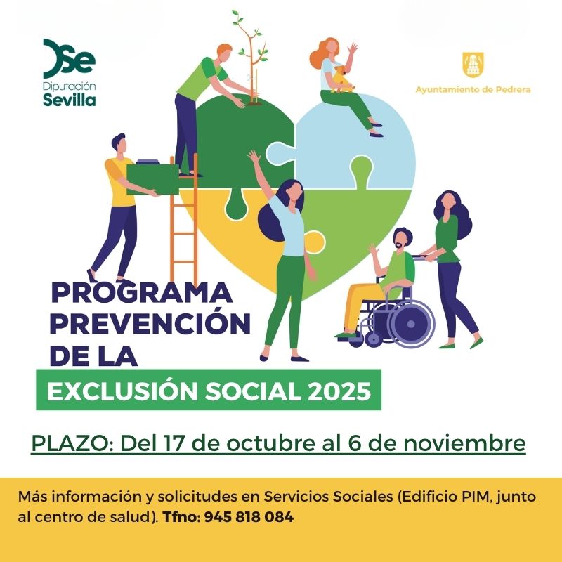 El programa de prevención de la exclusión social, acogido al Plan Actúa de la Diputación de Sevilla, tiene el objetivo de promover el fomento de medidas que coayuden a la prevención de la exclusión social a través del empleo temporal, de muy corta duración, y que permita al menos a los destinatarios finales disponer de recursos mínimos que le posibiliten salir del umbral de extrema necesidad.