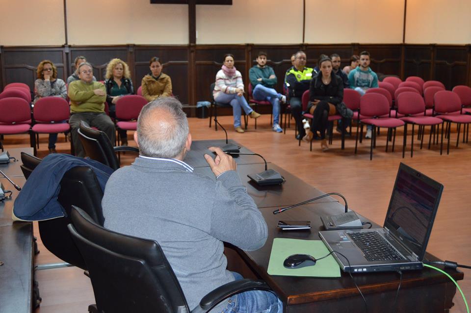 El salón de plenos del Ayuntamiento de Pedrera acoge ahora una reunión formativa para personal técnico y trabajadores municipales en torno al portal y administración electrónica, a cargo de INPRO, la sede provincial informática de la Diputación de Sevilla