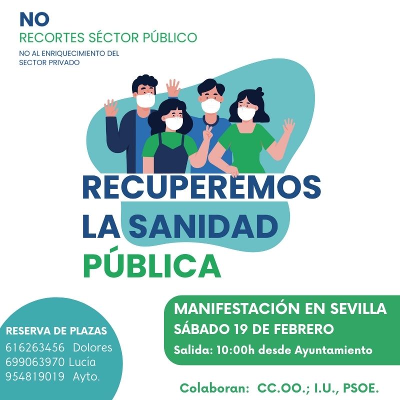 L a manifestación convocada por los sindicatos UGT y CC.OO, y respaldada por sindicatos médicos o de enfermería y Marea Blanca, para este sábado, 19 de febrero, en defensa de la sanidad pública andaluza, cuenta ya con la asistencia de más de 150 personas de Pedrera que acudirán hasta Sevilla para protestar contra la gestión de la sanidad en la comunidad andaluza.
