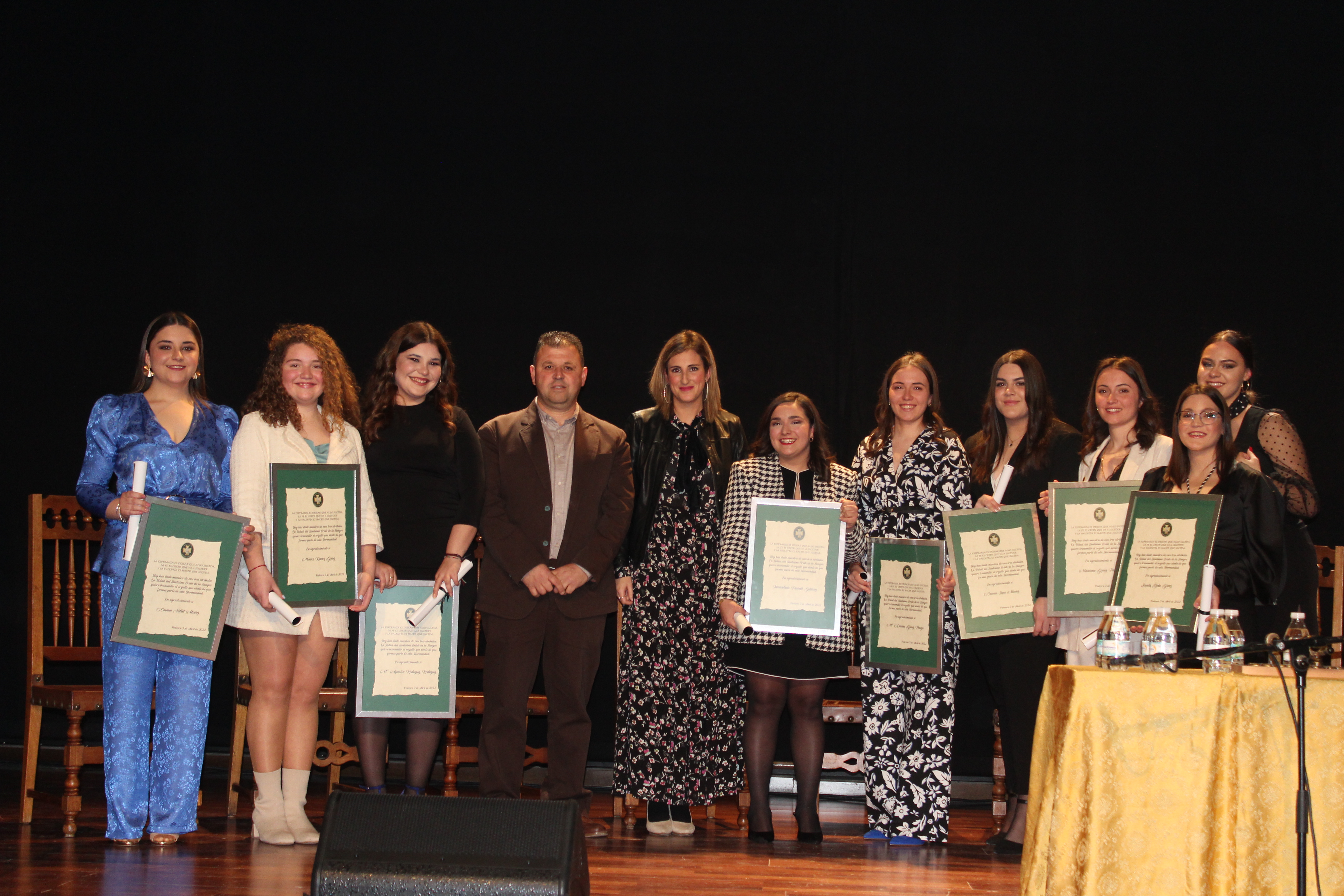 En ese momento, Pedrera esperaba oír el canto a la Semana Santa, para ser la primera cruz de guía que sale a la calle. Había ganas de vivir el rito del Pregón después de tres años. Y ese fue el momento de Mª Asunción Rodríguez, Carmen Vallet, Carmen Luna, Inmaculada Pariente, Mª Carmen Gómez, Macarena Gómez y Lourdes Pareja.