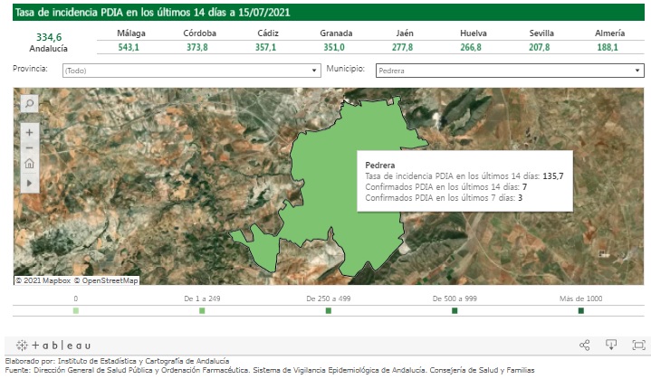 Esto hace que los casos activos en los últimos 14 días aumenten a 7, provocando que la Tasa de Incidencia Acumulada ascienda a 135,71 positivos por cada 100.000 habitantes (19,38 puntos más que los valores de ayer). Desde que comenzara la pandemia, Pedrera ha totalizado 568 casos.