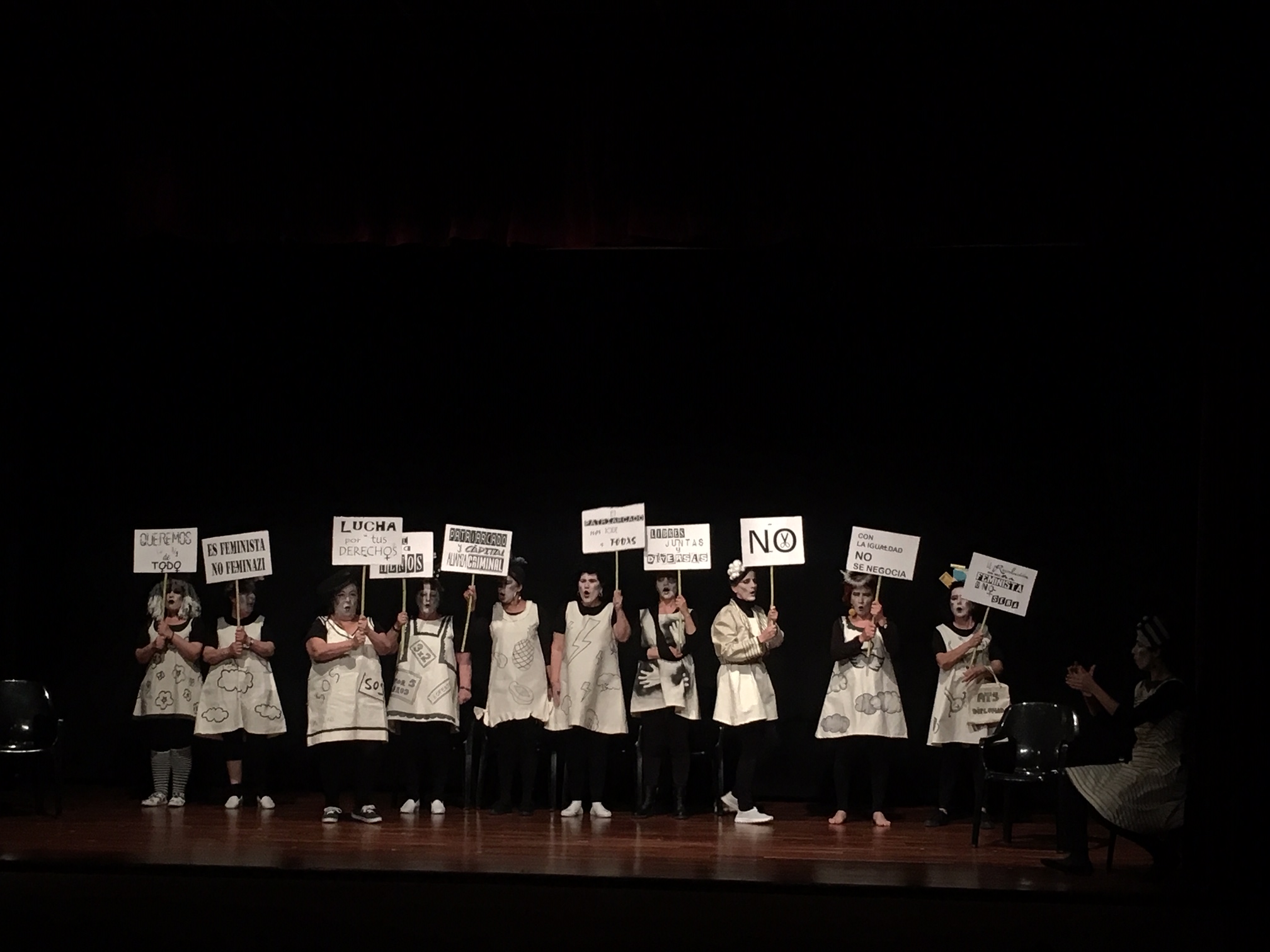La Compañía, ofreció un espectáculo en clave de comedia, con el que pretendían hacer visible, a través de 11 máscaras, situaciones distintas de vulnerabilidad a las que las mujeres están expuestas, día a día. Realizaron un recorrido en 8 cuadros, para hacer concienciar sobre la violencia invisible, sistémica, machista, patriarcal y económica en la que las mujeres son el sector más vulnerable.