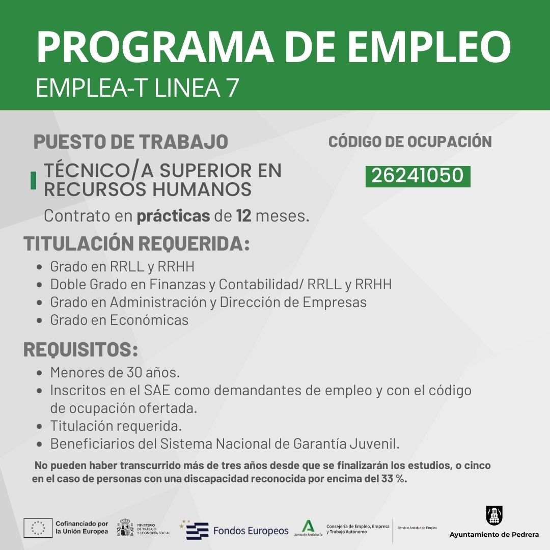 El Ayuntamiento de Pedrera lanza el programa Emplea-T con una primera oferta de empleo para jóvenes desempleados